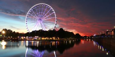 🎡 La Grande Roue de Montréal rises above the Old Port like a glowing beacon, inviting you to see the city from an entirely new perspective. As your gondola lifts into the sky, Montréal unfolds beneath you—cobblestone streets, sparkling waterfront views, and the distant silhouette of Mount Royal all blending into a breathtaking panorama. Families can share wide‑eyed wonder as the wheel turns, while couples savor a quiet moment suspended above the world. By day, the city feels vibrant and alive; by night, it transforms into a shimmering tapestry of lights that feels almost dreamlike. The climate‑controlled cabins keep you cozy year‑round, making it a perfect experience in every season. Whether you're celebrating a special moment or simply chasing a beautiful view, La Grande Roue offers a peaceful escape high above the city. It’s not just a ride—it’s a memory waiting to be made.